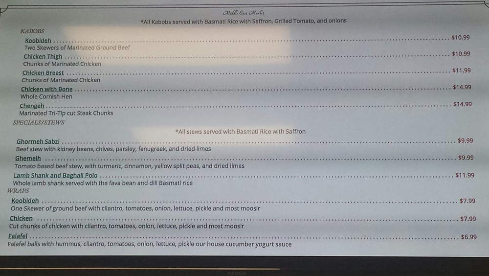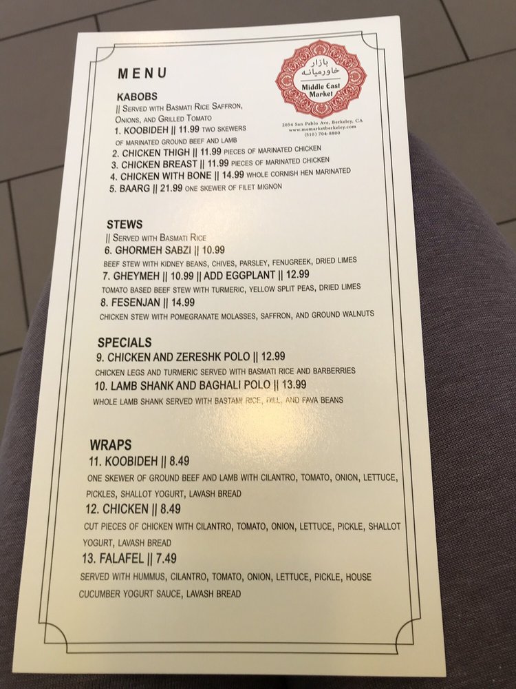 Middle East Market Menu (Update 2025)